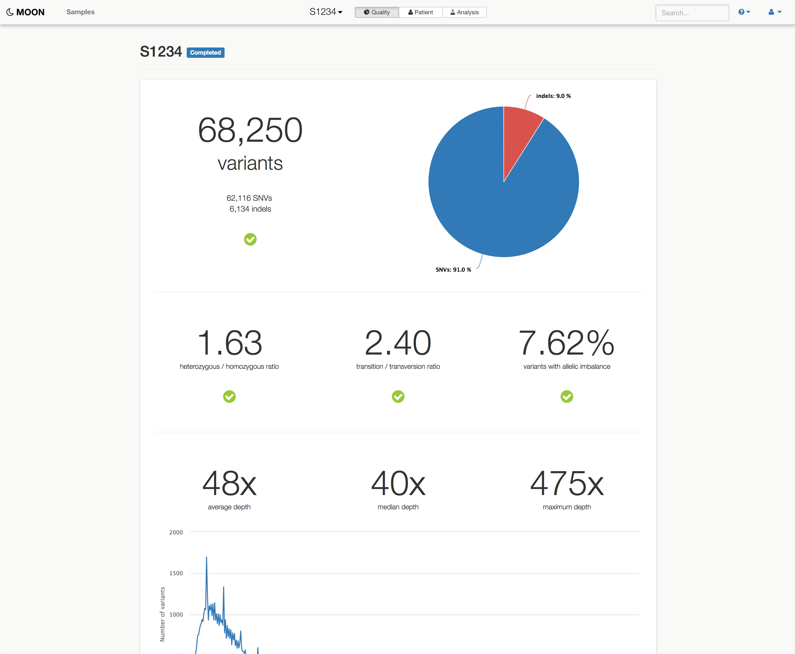 Before Moon, geneticists had to manually filter and rank mutations using special software in order to reach a diagnosis. This process can take several hours up to several days. Moon does the filtering and ranking automatically and proposes a diagnosis within 3 minutes.