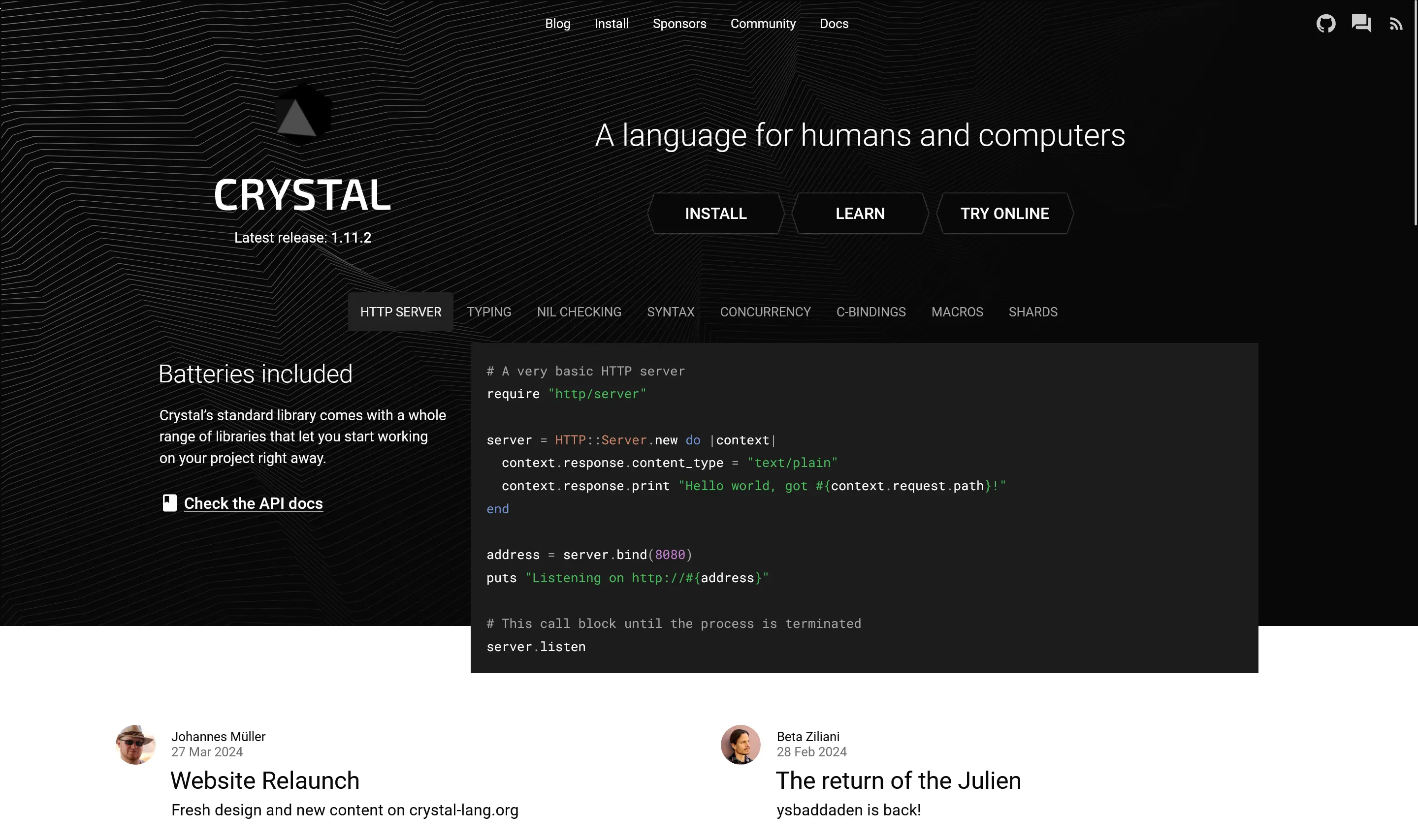 The Crystal website here at crystal-lang.org has received a major overhaul.